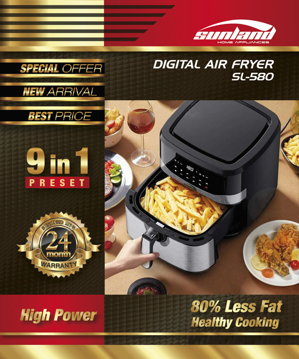 Extra large 8 liters pan and 6.5 liters basket capacity